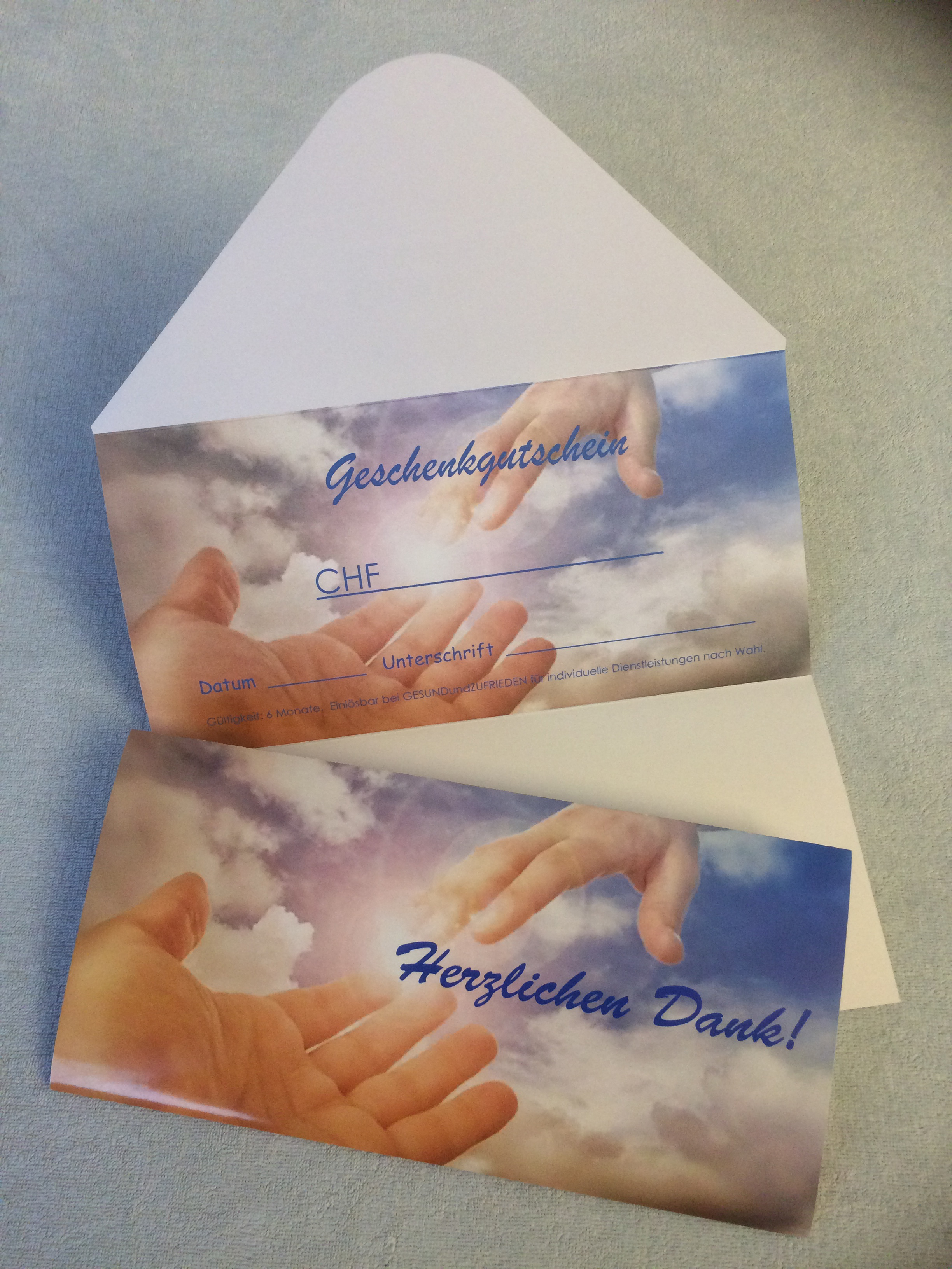 über einen frei wählbaren Betrag, einlösbar für Behandlungen oder Material nach Wahl: